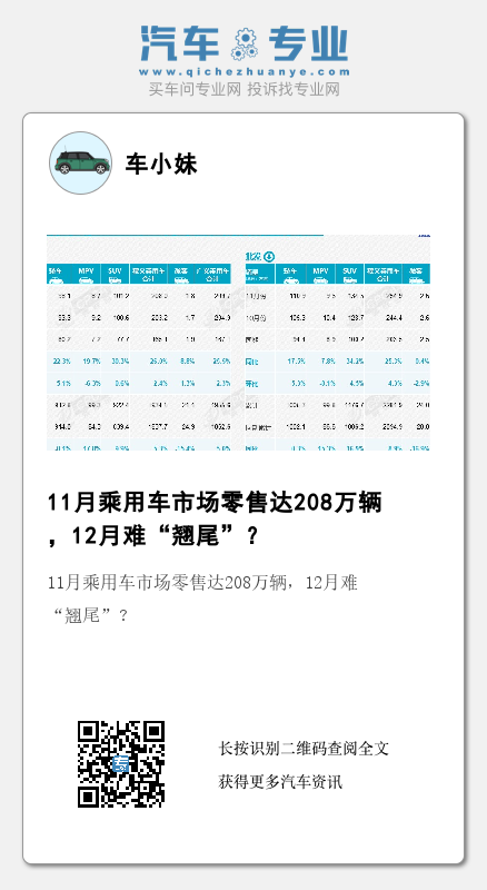 前文提到,乘用车市场形成冬季时间升温的持续走强态势。那么在已经到来的12月,乘用车市场的表现会如何呢?