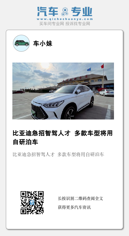 据国内媒体报道称,为了应对汽车厂商在智能驾驶上的竞争,比亚迪急招智驾人才,多款车型计划采用自研泊车功能。
