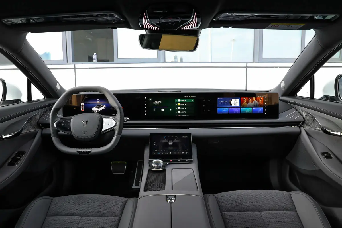 内饰方面,岚图追光PHEV整体呈现出简约的风格,灰黑配色很显高级,12.3英寸的三联屏搭配9英寸的下方触摸屏科技感十足。此外,新车配备了造型独特的多功能方向盘,美中不足的是方向盘加热需要选配(目前限时免费)。岚图追光PHEV搭载了VOYAH OS车载智能系统,并全系标配高通骁龙8155芯片、岚图VPILOT辅助驾驶操作系统等技术,集成全车无钥匙启动、智能语音交互、OTA升级等丰富科技配置。