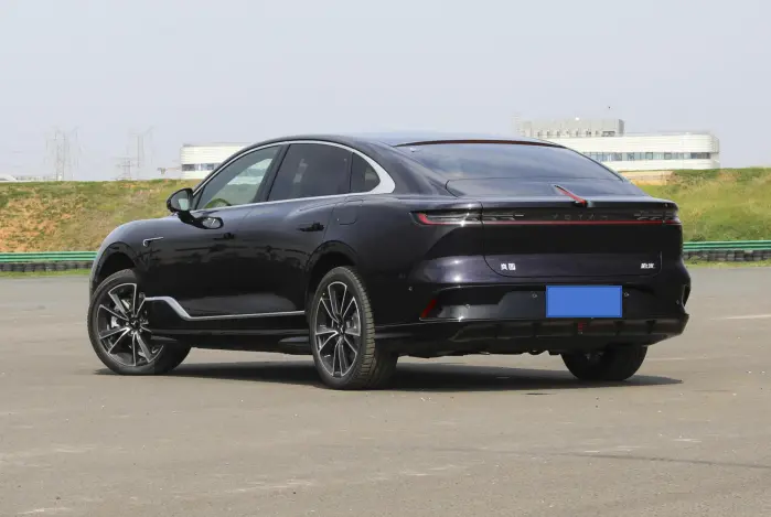车身侧面,岚图追光PHEV比较时尚动感,圆润的腰线为间断式设计,看上去有点儿臃肿。侧裙处还加入哑光银饰条装饰,视觉效果不再单调。来到车尾,新车尾灯贯穿式设计同样为家族式设计,点亮后会发现类似LOGO的造型,与岚图追光不同的是,该款车还加入了竖状的高位刹车灯,设计手法上有点儿类似红旗车的贯通车标。