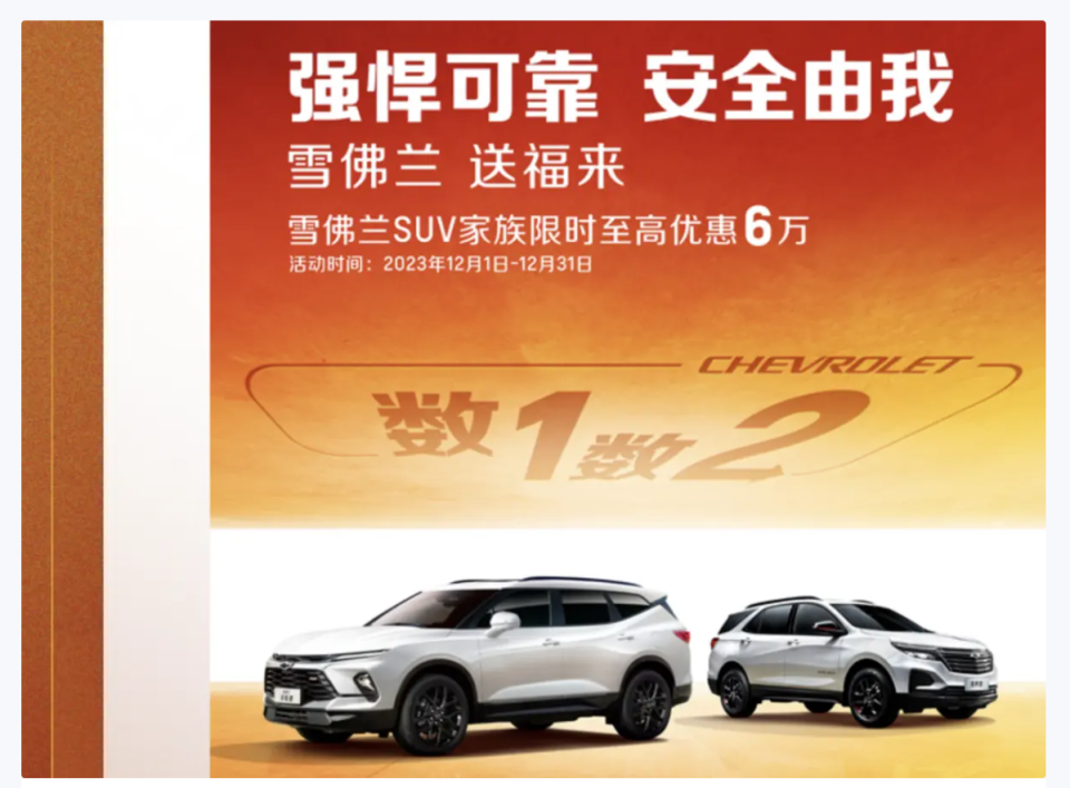 譬如上汽大众在12月份就为途昂、朗逸、途岳推出至高58000元的综合优惠政策,以及实打实的各项福利政策。除此之外,雪佛兰更是推出了旗下SUV家族在12月份至高可享6万元的优惠。