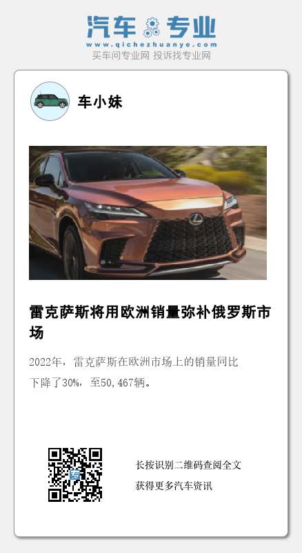 2022年,雷克萨斯在欧洲市场上的销量同比下降了30%,至50,467辆。除了退出俄罗斯市场外,半导体短缺导致的停产也对其销量造成了打击。