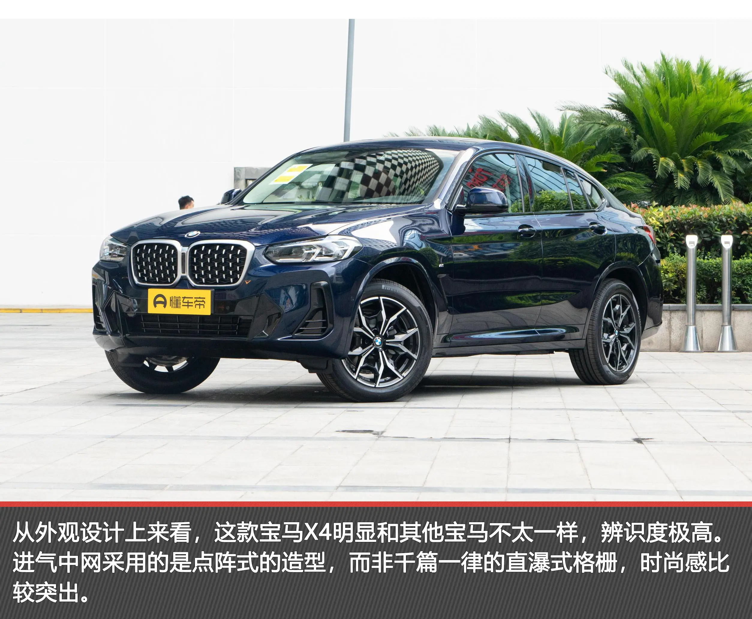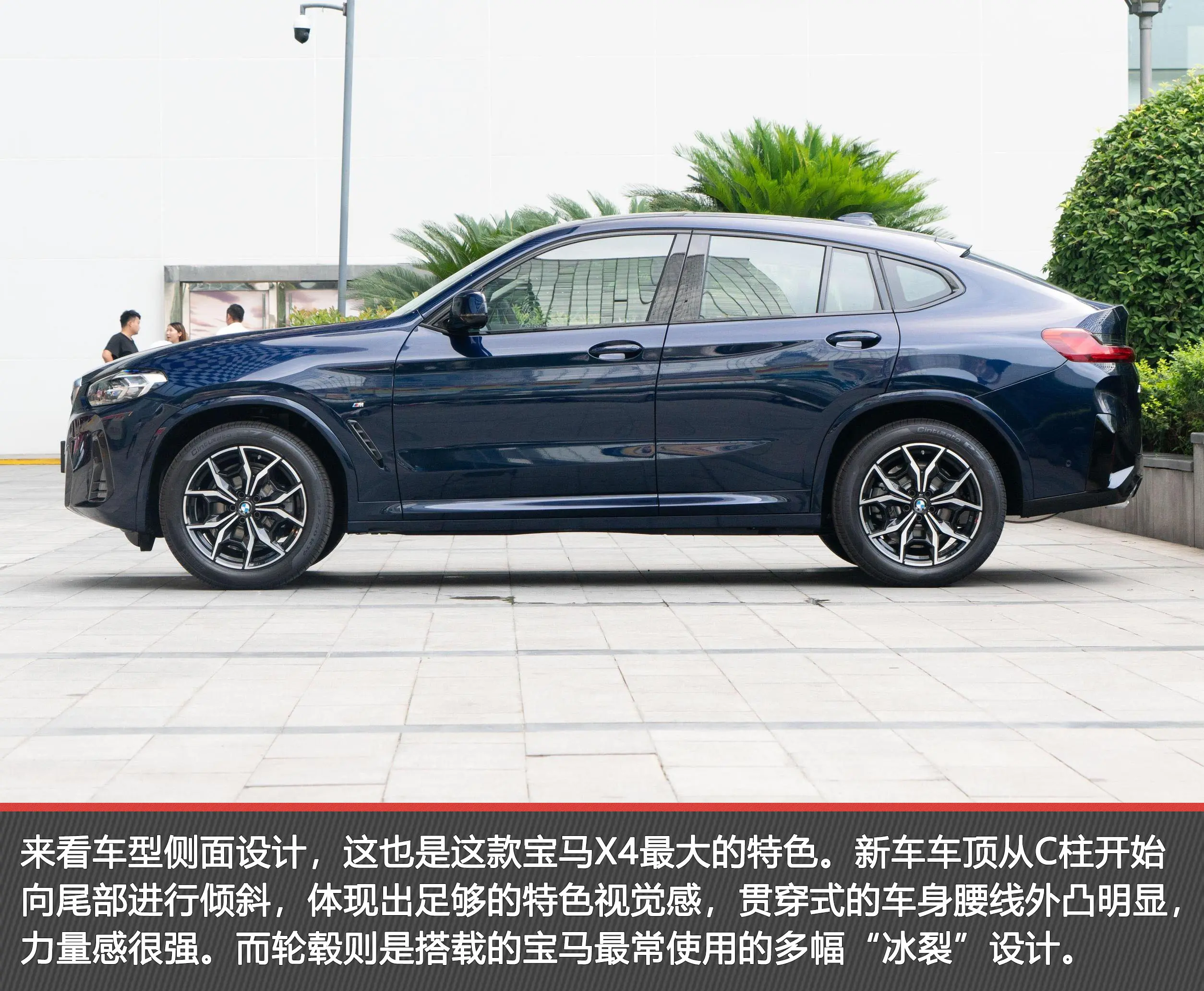豪华品牌中型SUV一直都是各品牌的销量主力,不管是宝马X3、奔驰GLC还是奥迪Q5,都是主打平稳大气的风格,但是在豪华中型SUV中,也不乏走个性潮流风格的选手,采用了大溜背造型的宝马X4(图片|配置|询价)便是其中很有代表性的一个。我们以宝马X4 2022款 xDrive 25i M运动套装为例,一起来了解一下这款车型。