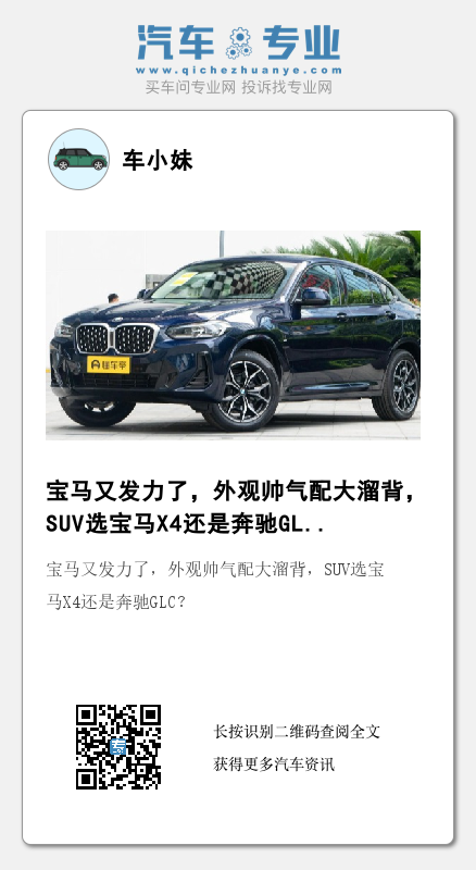 从性价比角度来说,宝马X4的竞争力在同价位并不突出,但是它的目标消费者一般更看重的是其比较个性的外观设计,相对小众的定位也让宝马不会对其销量抱有太高期望。总体来说,宝马X4的存在正是为了满足豪华中型SUV这一级别想要有独特用车体验的用户,它也是这个细分市场比较不错的选择之一。