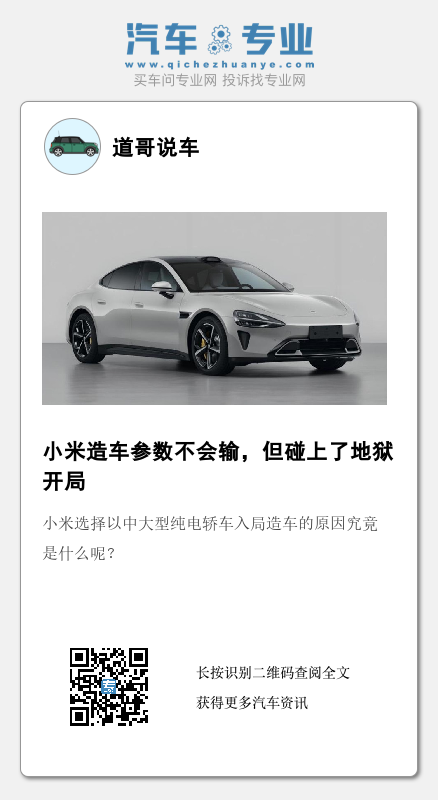 一定程度上来说,小米SU7一出生就跌进了价格战的漩涡。值得一提的是,小米品牌一直用高性价比和消费者们“交朋友”,但如今的新能源汽车市场甚至整个汽车市场,谁不是在拼性价比,而这也容易造成“走小米的路,让小米汽车无路可走”现象。面对竞争如此激烈,价格战已经到了白热化的汽车市场,小米造车的开局难度可想而知。
