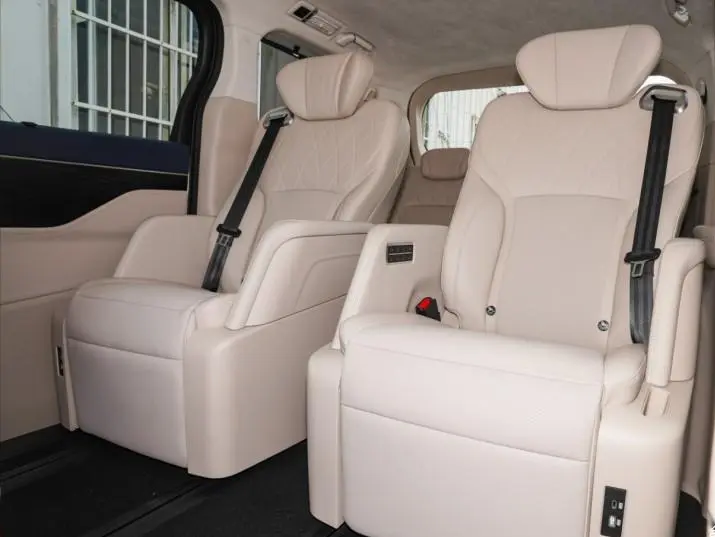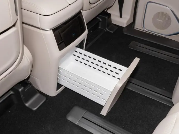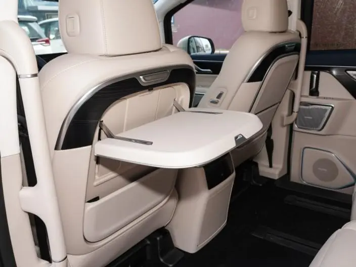 而像按摩、加热、通风这些,都是国产同级MPV的标配,就不过多展开了,主要还是聊聊高山抄来的一些细致周到的好答案。比如说小桌板,左右都配备,然后的承压能力,角度,和L9,GL8那些尖子生很像,大概率是同一个厂家供货。