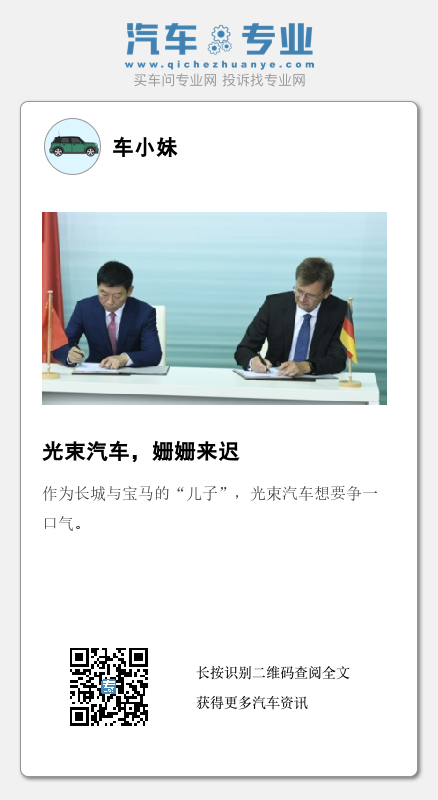 其次,值得注意的一点,光束汽车是先成立,后商讨的合作细节。这也就意味着,长城和宝马双方各自的想法,并没有从一开始就达成一致。