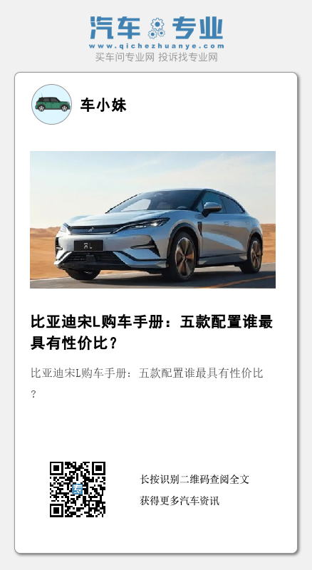 近日,比亚迪旗下全新B级旗舰猎装SUV—比亚迪宋L(图片|配置|询价)正式上市,新车共推出4款后驱版车型和1款四驱版车型,官方指导价为18.98万元—24.98万元。那么被誉为比亚迪最美SUV的比亚迪宋L究竟有何特别,哪款车型更具有性价比呢?