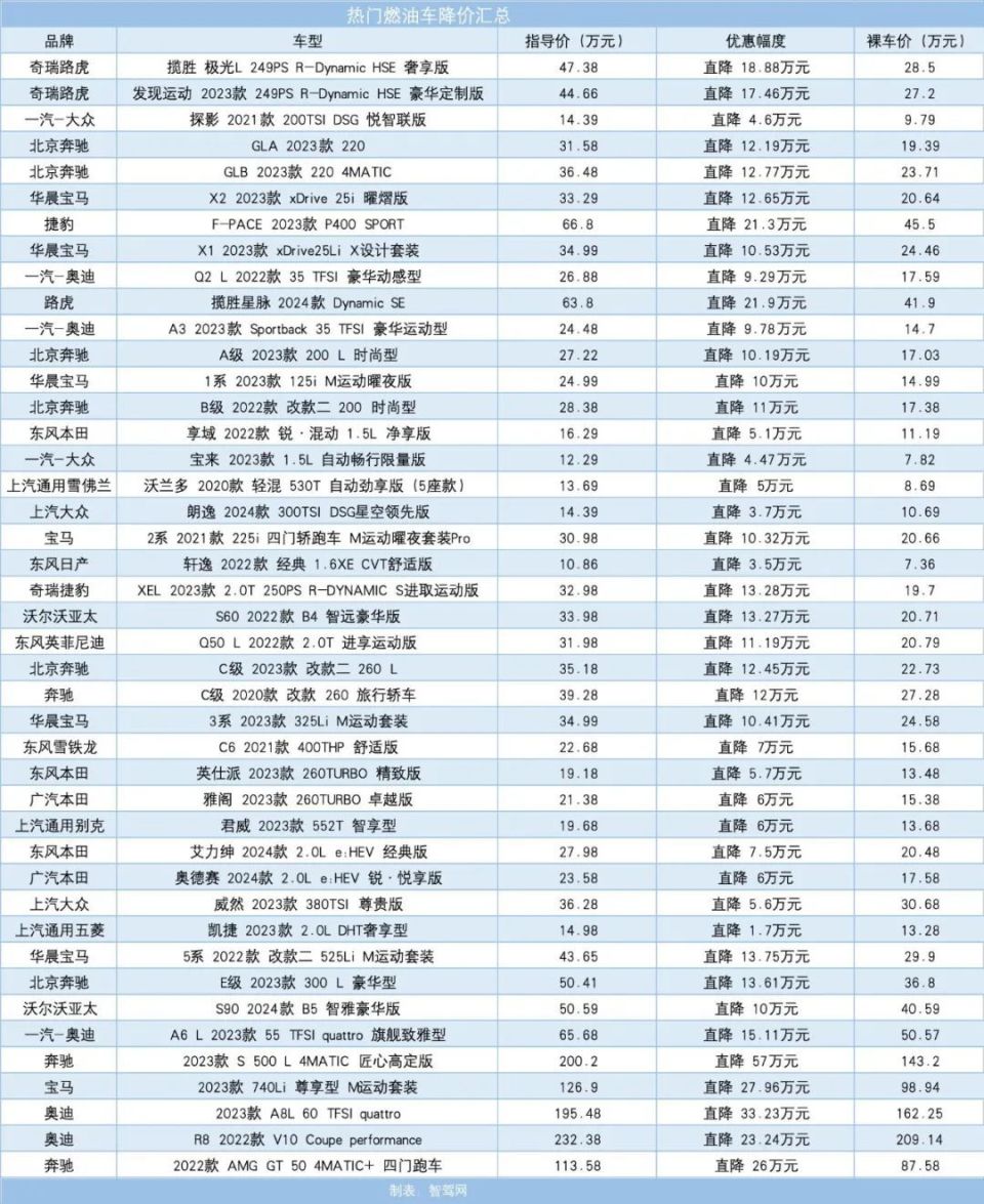 而据智驾网统计,从热销的燃油车的售价来看,燃油车已经守不住20万元的价格底线了,其降幅远大于新能源汽车。