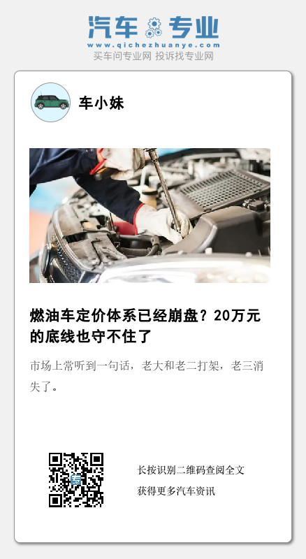 当然如何看待燃油车能不能守住20万元的定价,不仅是燃油车和新能汽车之间的竞争,主要是自主品牌与合资品牌的较量。