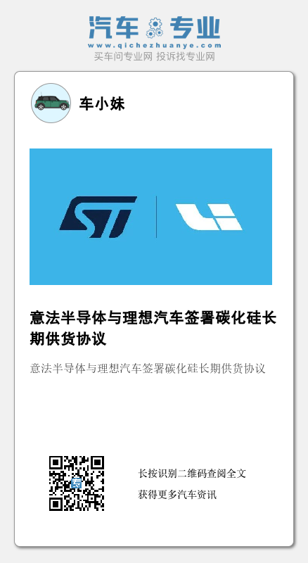理想汽车供应链副总裁孟庆鹏表示:“理想汽车致力于为家庭用户提供超预期的豪华电动车。本次与ST的SiC供货协议签署印证了理想汽车开发纯电动车产品的坚定决策。我们看好与全球碳化硅技术龙头ST的未来合作,这必将是一段创新和成功的合作关系。”