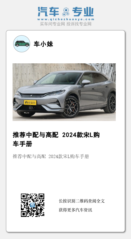 2024款比亚迪宋L(图片|配置|询价)已于12月中旬上市,宋L是该品牌旗下全新中型SUV,根据配置、动力的差异,推出5款车型供用户选择,售价区间为18.98-24.98万元。为了方便大家更好的了解新车,我在此梳理了一下这5款车型的配置、价格差异,并做出了购车推荐,希望对您选车、换车有帮助。