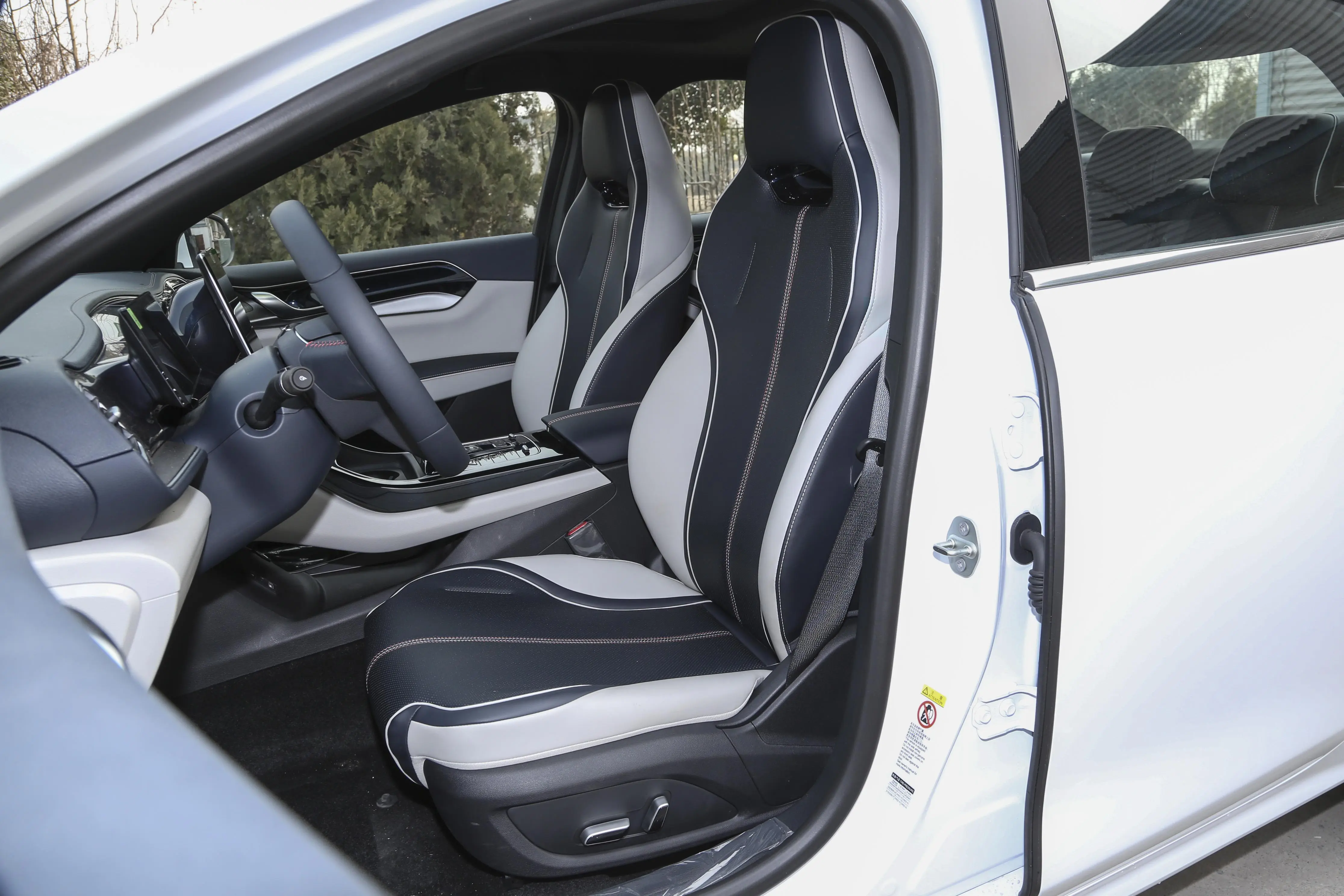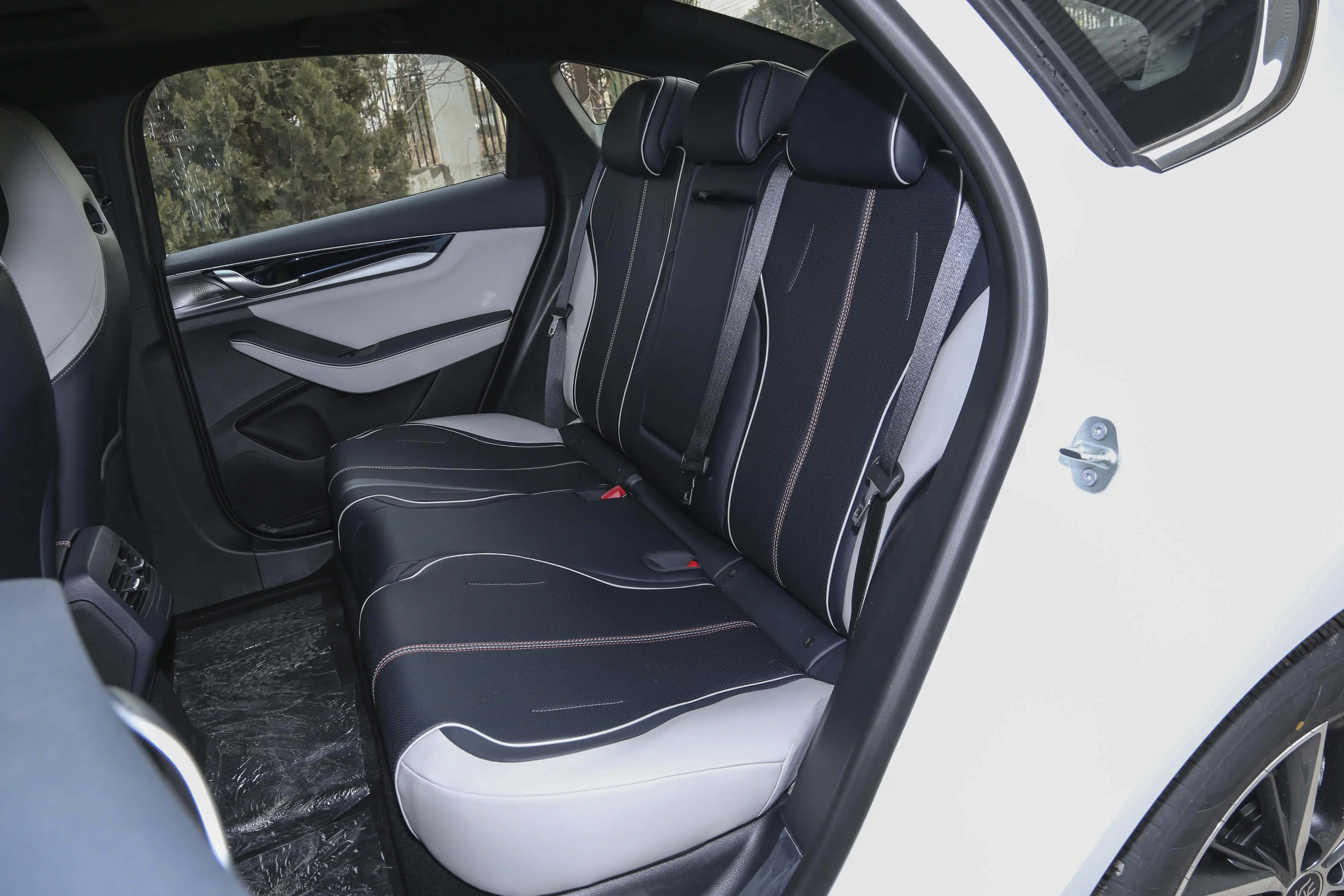 座椅部分采用一体式造型,面料为仿皮材质,拼色效果带来了不错的运动感,前排座椅侧翼部分加强了包裹性,实际乘坐上比较能保持姿势稳定,以及减少长时间乘坐的疲劳。后排座椅延续了双拼色效果,三个座位均配备了头枕,并且地板中间隆起不明显,实际乘坐感受良好。至于空间方面,身高175cm的本人落座后排腿部有两拳余量,头部也有一拳,表现比较宽敞。