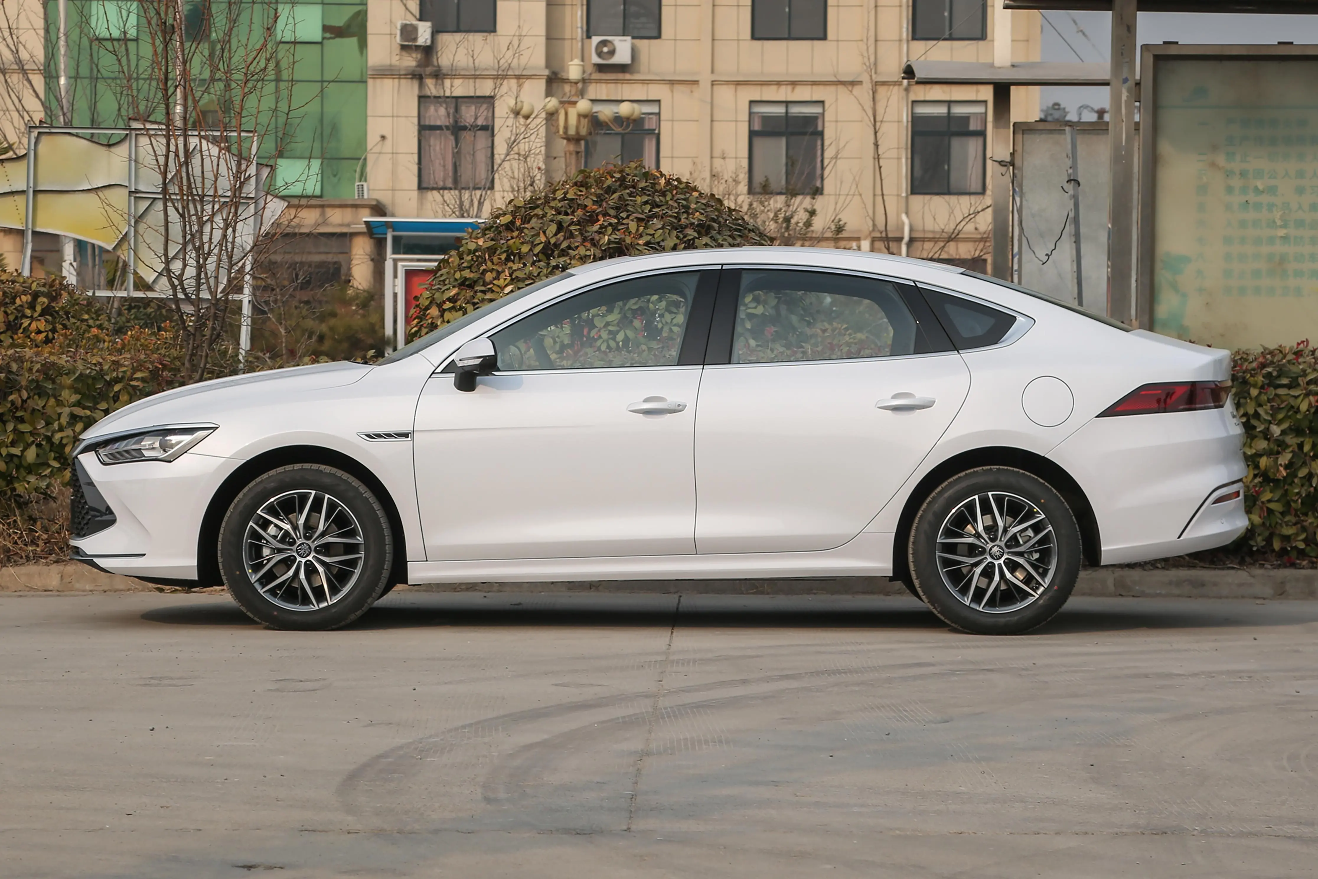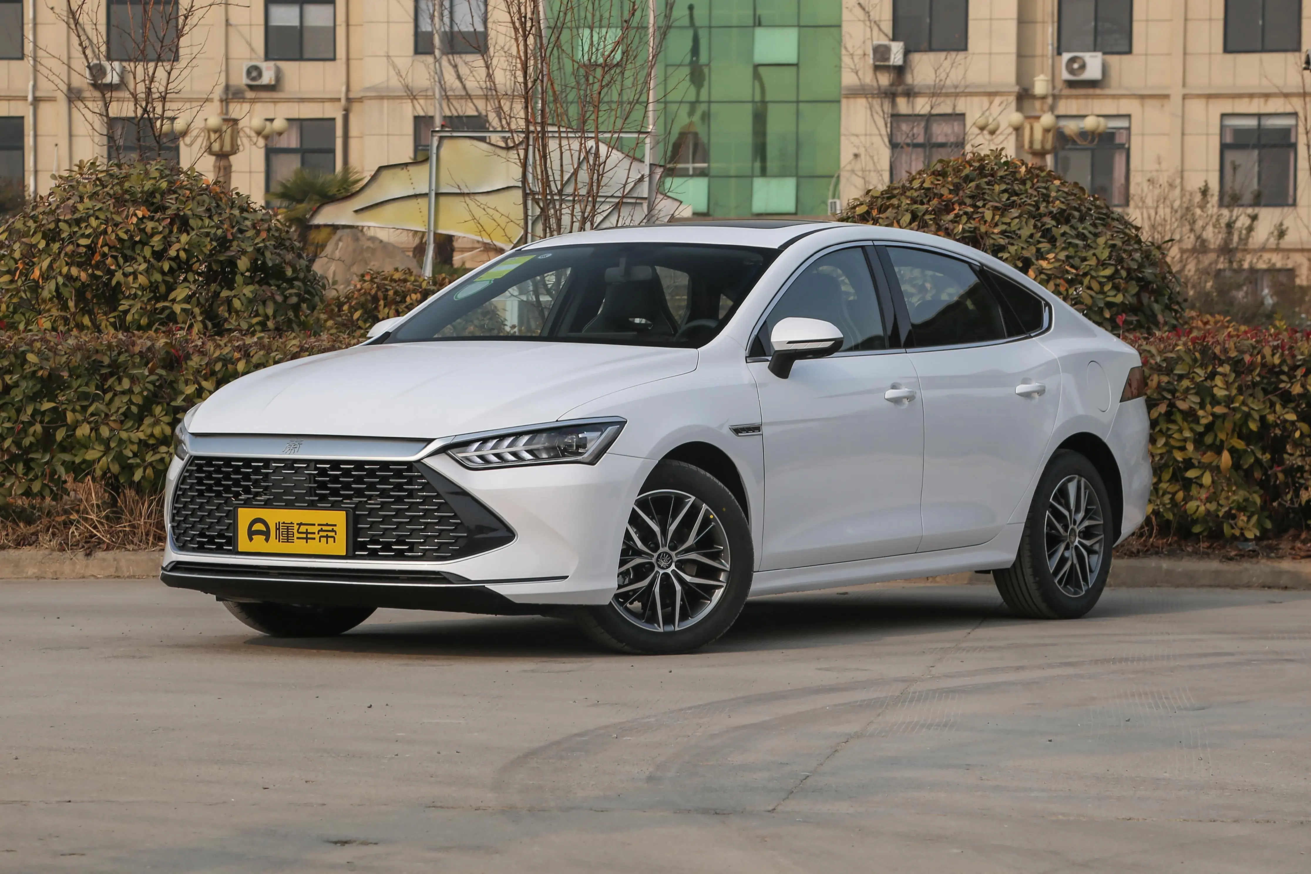 外观方面,秦PLUS DM-i的设计富有现代感,前脸部分采用了大尺寸的格栅设计,中央装饰有比亚迪的品牌标志,给人以强烈的视觉冲击力。LED大灯的线条流畅,与格栅相结合,展现出一种科技感和攻击性。从侧面看,秦PLUS DM-i的车身线条平滑,配备了多辐式合金轮圈,营造出了动感与稳重并存的气息。