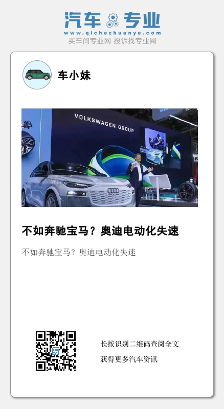 此前,奥迪CEO承认奥迪落后于竞争对手,电动车在华缺乏竞争力。