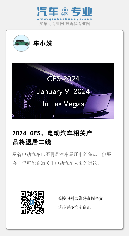 据外媒报道,在2023年的CES科技展上,有关电动汽车和充电技术的新闻成为焦点,引起轰动。然而在2024年的展会上,有关电动汽车的新闻减少许多,反映出电动汽车市场的发展现状。