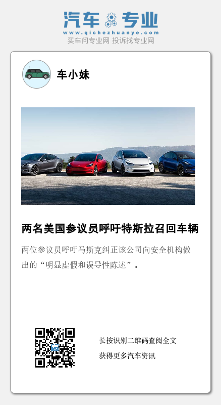 两位民主党参议员在信中表示:“对于将故障归咎于客户的做法,我们深感不安。特斯拉不仅试图将车辆质量不达标的责任推卸给消费者,而且还向NHTSA提供同样的错误论点,这是不可接受的。”