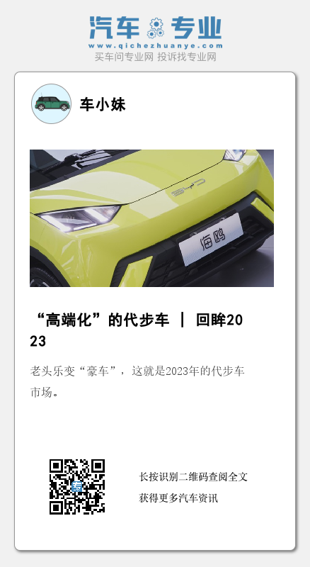 热度褪去后,消费需求趋于理性,品质逐渐成为销量唯一的抓手,于是我们可以发现,2023年的代步车,开始“高端化”。