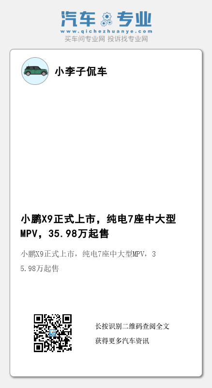 日前,我们从相关渠道获悉,小鹏X9(图片|配置|询价)正式上市,新车定位纯电中大型MPV,官方售价区间为35.98-41.98万元。续航方面,新车拥有610km、640km和702km三种纯电版本可选。此外,新车目前是全球范围内唯一标配后轮转向的MPV。下面来看详细情况。