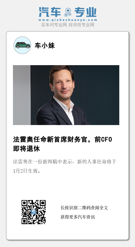 据外媒报道,法国汽车零部件供应商法雷奥宣布,该公司已经将副首席财务官Edouard de Pirey 提升为首席财务官,接替即将退休的Robert Charvier,后者已经在法雷奥工作了24年。