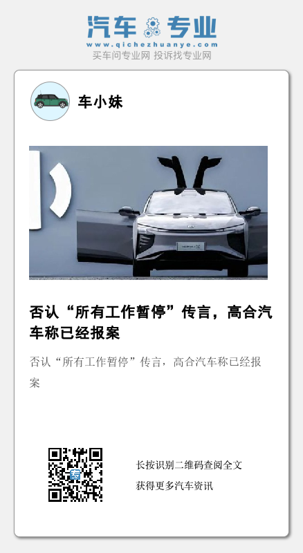 高合汽车发表声明,否认其“所有工作暂停”,称公司运营一切正常,研发、生产、营销、交付等各项工作正常推进。