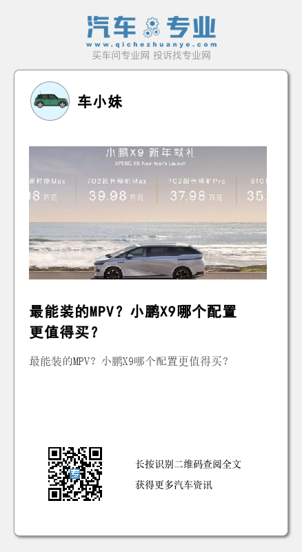 订单火爆,小鹏X9哪个配置更值得买?我们从4款车的配置差异进行分析。