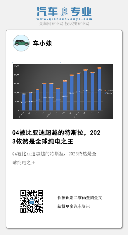 不过尽管如此,特斯拉仍未能避免被其最大的竞争对手比亚迪超越。得益于更广泛的平价电动车型,比亚迪在2023年第四季度销售了526,409辆纯电动汽车,成为电动汽车市场的新领军者,这也是比亚迪纯电动车销量历史上首次超过特斯拉。