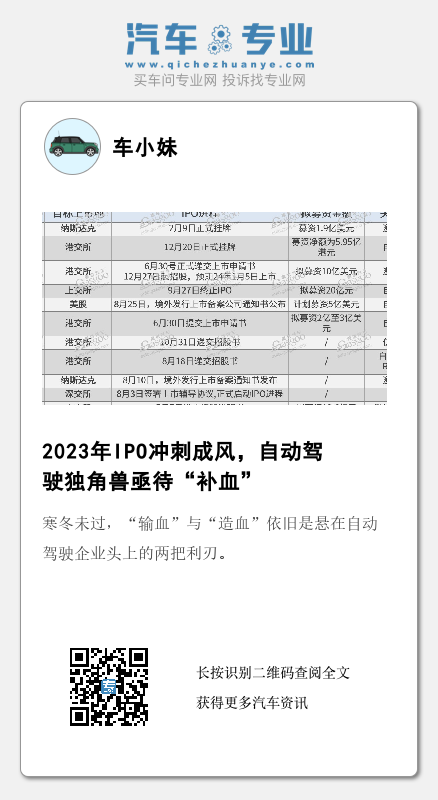 而若细数2023年,可以说,这也是国内自动驾驶领域独角兽密集排队上市的一年。当自动驾驶领域资本的寒潮迟迟未退,扎堆IPO便成了自动驾驶赛道玩家获得“补血”的最优渠道。