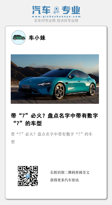 在汽车市场中,车型命名是一个重要的环节。一个好的名字不仅能够吸引消费者的注意,还能为品牌树立独特的形象。有趣的是,当下,有很多新能源车型的名字中都含有数字“7”。