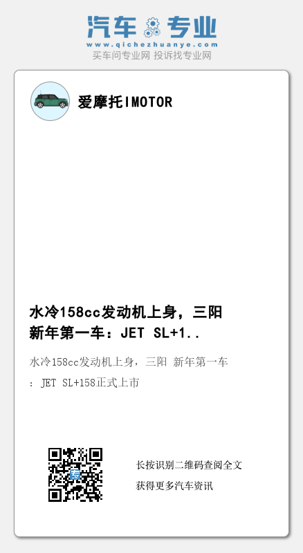 JET SL+ 158 这次也拥有变色蓝、幻光白、烟茶黑三种车色选择。价格方面,台湾售价为10.58万台币约人民币2.44万元,而升级为水冷发动机后应该也会进入大陆市场。