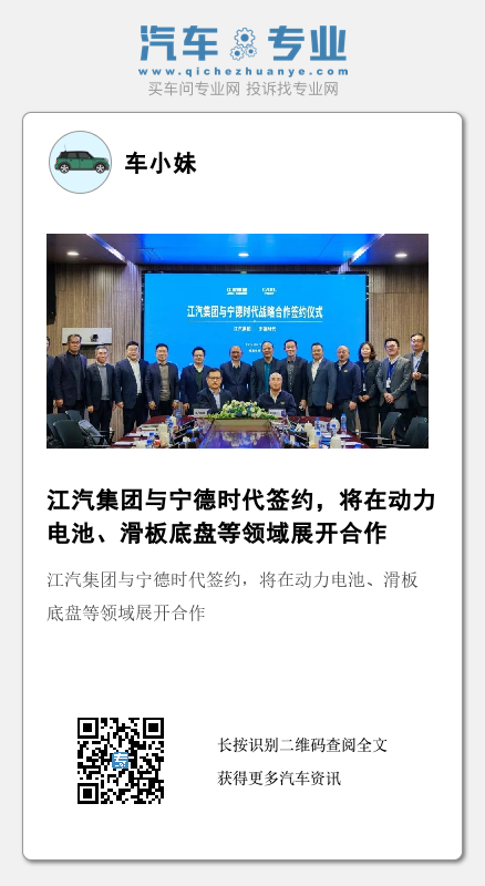 动力电池领域,宁德时代将向江汽集团提供动力电池新产品、新技术,完善的产销研协同服务,以及结合整车平台与电池深度融合的高度集成技术,共同打造有竞争力的新能源车型。