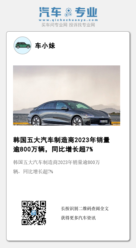 据韩联社1月3日报道,韩国五家主要汽车制造商去年总销量超过了800万辆,同比增长超7%。这是自2018年以来,韩国汽车制造商总销量首次超过800万辆。