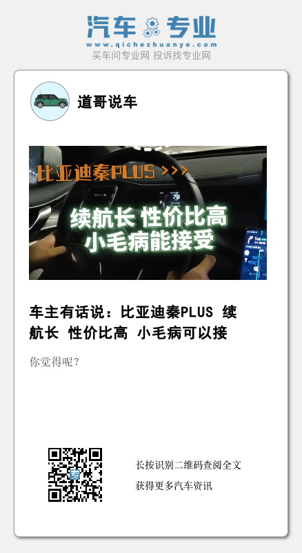 车主有话说:比亚迪秦PLUS 续航长 性价比高 小毛病可以接