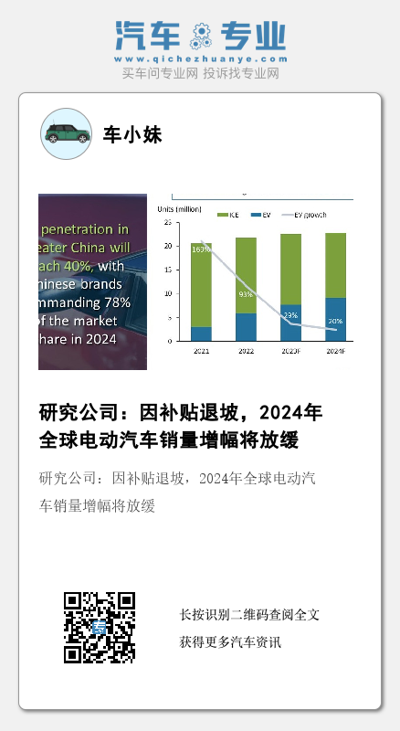 Canalys首席分析师Jason Low表示,“尽管2023年电动汽车的平均售价(ASP)下降了20%,但市面上的可选产品受限和充电体验不便都阻碍了需求,影响了电动汽车市场的增长。”