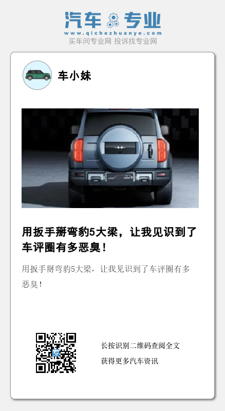 现在黑一款车,都不用讲基本法了?拿着扳手就是掰了?没有条件黑创造条件黑?我还是怀念之前的车评圈,那时候的车评人虽然也黑车企,但是至少是拿着测试数据,拿着自己的主观驾驶感受黑。现在呢?拿着扳手黑?