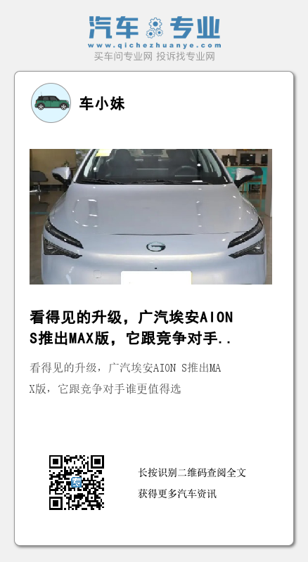广汽埃安AION S MAX的上市不仅丰富了消费者的选择面,而且有助于改变它在国人心中留下的网约车形象,这点对于它来说也是有好处的。起码意味着广汽埃安AION S的受众面更广,不过同级别市场的竞争愈发激烈,与它们相比,广汽埃安AION SMAX确实有很大压力。如果消费者对续航里程没有要求,家里也方便安装充电桩,个人建议可以考虑次低配,搭载的配置会更加丰富。相反,对续航有要求,但是对配置无所谓的话,610km低配就是一个不错的选择。