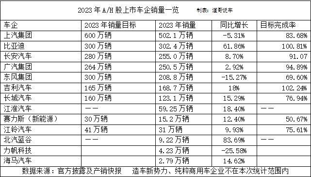 随着2024年的到来,充斥“内卷”的2023年也彻底结束,相应地,车企们也交出了“卷”出来的成绩。《道哥说车》统计了A/H股几家主流乘用车上市车企在2023年的销量成绩,很意外地发现,车企们似乎白“卷”了。