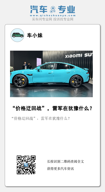 雷军深谙其道。而小米汽车价格仍迟迟未定,这在很大程度上反映出小米汽车在市场和利润空间之间的辗转和踌躇。