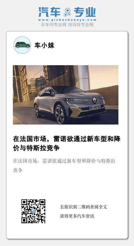 雷诺曾与联盟伙伴日产一起成为电动汽车市场的先驱,但如今却被新的竞争对手超越。数据公司AAA的数据显示,去年,这家法国汽车制造商在本土市场销售了近1.8万辆Megane电动汽车,而特斯拉在法国电动汽车市场上销售了2.5万辆Model 3和3.7万多辆Model Y,是法国电动汽车市场的领导者。此外,2023年全年,中国MG品牌在法国市场共售出2万辆MG4汽车。