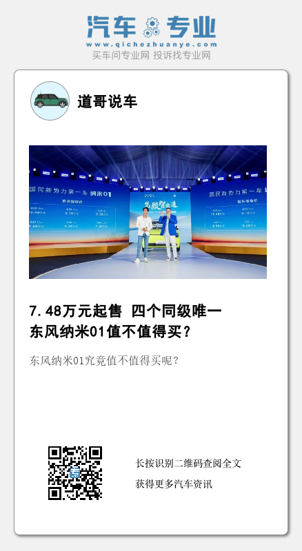 而用上“最”和“第一”这样修饰词的东风纳米01究竟值不值得买呢?