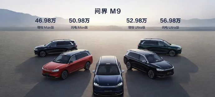 相关资料显示:问界M9是问界汽车旗下第三款车型,定位大型SUV,早前在上海车展前夕亮相并开启预售,预售价为50-60万元。新车在去年12 月 26 日上市 ,共推出4款车型,售价区间为46.98万-56.98万元。官方消息,问界先行者将在今年1月26日启动交付,2月26日开始大量交付。