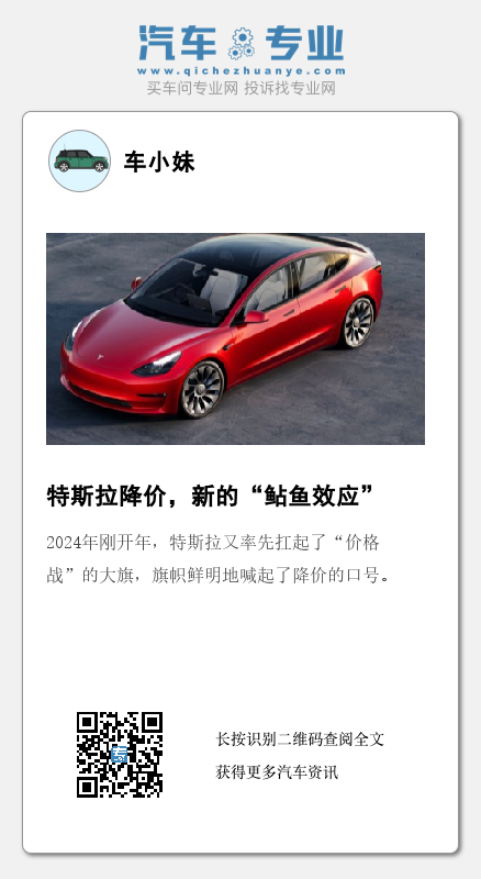 2024年刚开年,特斯拉又率先扛起了“价格战”的大旗,旗帜鲜明地喊起了降价的口号。