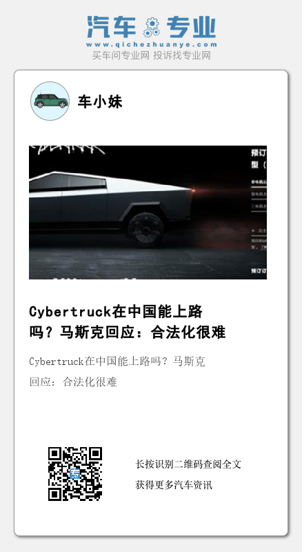 近日,有关特斯拉电动皮卡Cybertruck将于一季度在国内亮相的消息在网上传得沸沸扬扬。对此,马斯克做出回应称:在中国很难合法上路。