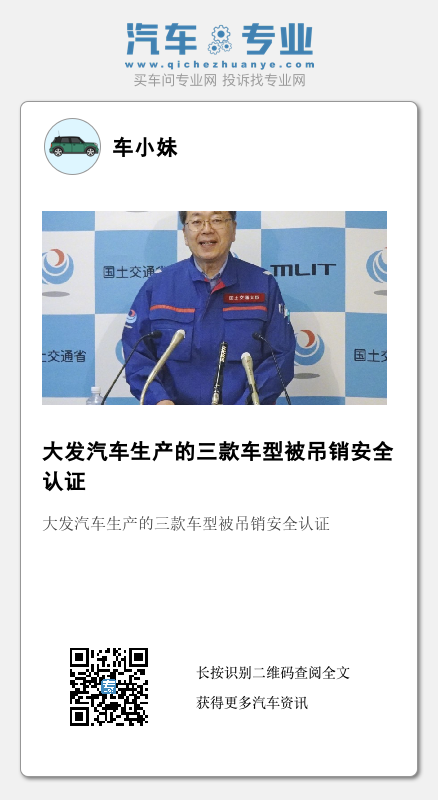 日本汽车工业部称,由于测试结果被篡改,包括大发Gran Max、丰田TownAce和马自达Bongo在内的三款汽车的安全认证被吊销。这是自去年12月丑闻曝光以来日本政府下达的第一项重大命令。