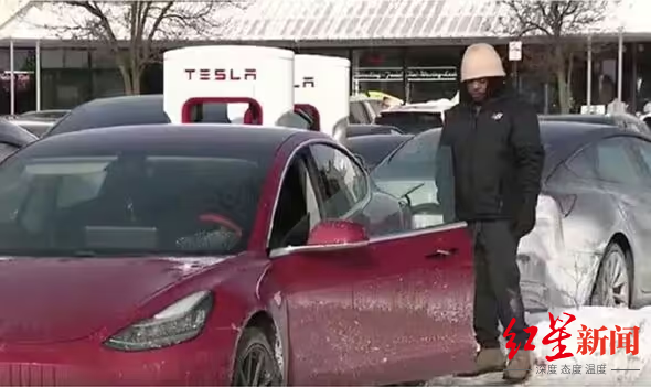▲特斯拉在严寒下“冻僵”