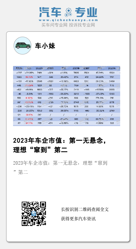 另外,小鹏汽车的市值也值得关注。毕竟,单从市场表现看,2023年小鹏并不突出,全年销量14万辆,同比仅增17%,目标完成度也才7成。净利润方面,小鹏2023年前三季度亏损继续扩大至90亿元。但是,2023年小鹏汽车市值突破900亿元,较上一年实现60%的双位数增长。