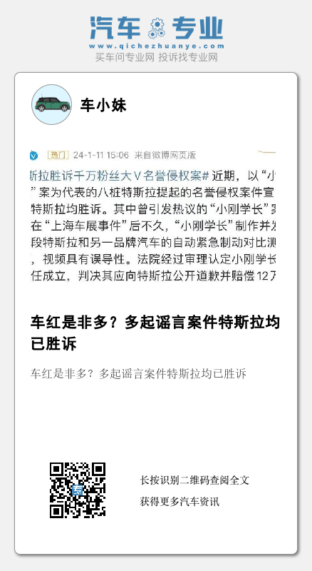 近期,微博账号新浪汽车发布信息显示,以媒体人“小刚学长”案为代表的八桩特斯拉名誉侵权案件宣判,结果是特斯拉均胜诉。该新闻发布后引起了网友的广泛关注。