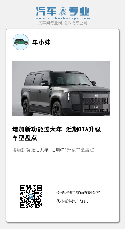 OTA英文全称是Over-the-Air-Technology,即空间下载技术的意思。通过网络从远程服务器下载新的软件更新包对自身系统进行升级。OTA进行细分有三种,分别是SOTA、FOTA和DOTA。其中SOTA是基于影音娱乐APP进行升级;FOTA是基于底层控制软件所带来的升级,而DOTA则是故障诊断和在线修复的升级。今天就来为大家盘点一下近期进行了OTA升级的车型。