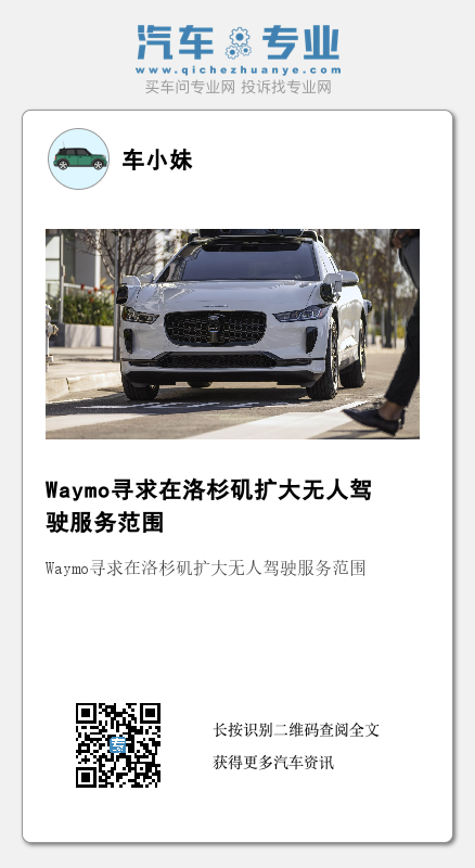 如果获得许可证,Waymo将能够在加州最大城市洛杉矶(Los Angeles)全面部署其车队。在此之前,该公司已经开始在洛杉矶测试其自动驾驶汽车服务,但是只有获得了邀请的用户可以使用其服务。当前,Waymo已经开始在旧金山(San Francisco)提供自动驾驶汽车商业服务。CPUC没有立即对置评请求做出回应。