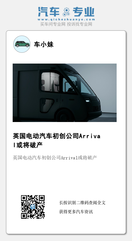 1月22日,路透社援引英国《天空新闻》(Sky News)的报道称,英国电动汽车初创公司Arrival在聘请了一组新顾问监督应急计划后,离破产又更进一步。